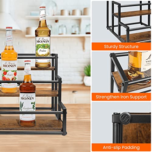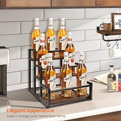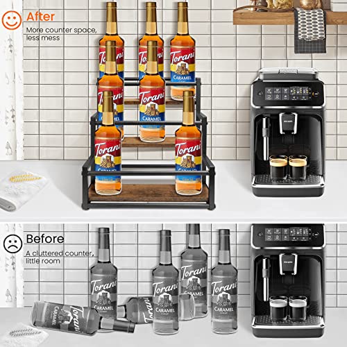 - SYRUP ORGANIZER: This coffee syrup rack is designed to display coffee syrups and wine bottles in a neat and organized arrangement, this is great way to make more efficient use of space, so you don't bother by messy counter space.