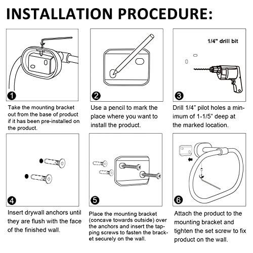 • 【Easy Installation】DO NOT need professional installer. With step by step installation guide, the oval hand towel rack is easy enough to be installed by yourself. The wall-mounted installation method ensures sturdy and durable.