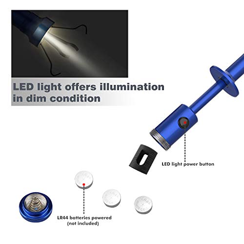- LED LIGHTS(Batteries NOT Included): Comes with LED lights at the handle which are controlled by a black switch button, it increases brightness in dark light. And the LED lighting is powered by 3 x LR44 batteries (NOT included).