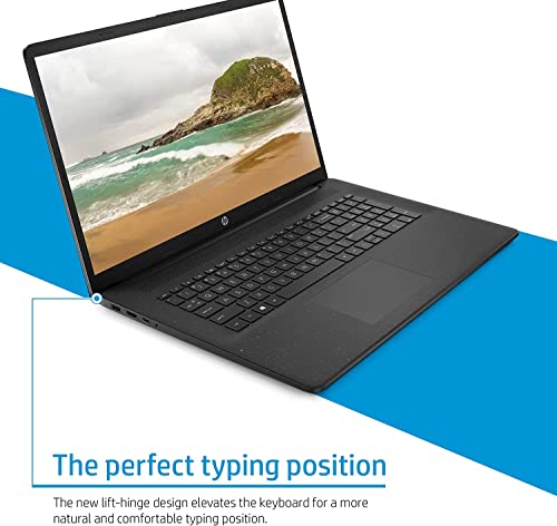 - A 17-INCH LAPTOP WITH A BIG VISION FOR THE FUTURE. The HP 17 Laptop is thoughtfully designed and delivers performance with an Intel processor, fast Wi-Fi technology, and loads of storage. Enjoy a more natural and comfortable typing position with the lift-hinge design and enlarged click pad. The HP 17 design includes sustainable materials like oceanbound plastic and from post-consumer recycled plastic