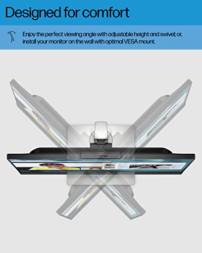 - EASY ON THE EYES – Experience reduced eye strain with zero impact on color accuracy with an HP Eye Ease with Eyesafe Certified HP monitor (7).DESIGNED FOR COMFORT – Work or game in the perfect position by adjusting your screen’s height, swivel, and tilt. Find even more comfortable ways to view your monitor courtesy of its standard 100 x 100 millimeters VESA mounting (8).