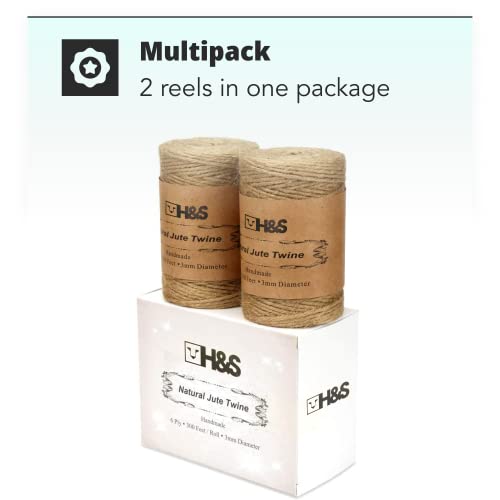- The jute twine length 600 feet (183 metres) in total (300 feet per reel, 2 reels in a package)