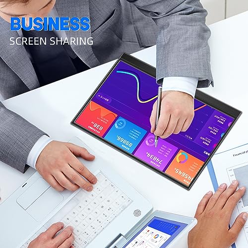 Product Description Ten-point touch function Equipped with a ten-point interactive touch screen that provides a precise and responsive touch experience. So you can easily edit documents, create slides, and work smarter and more efficiently with your fingertips. Increase your work efficiency Simply connect additional portable USB-C monitors to your laptop via Type-C. You can also keyboard or mouse to the extended monitor via the micro USB OTG adapter. This frees you from a single small screen and increases your work productivity. Multiple display modes Portable monitor touchscreen has three modes to choose from: duplicate mode, expand mode and second screen mode, also can scale your smartphone to desktop mode or phone mode.It is very suitable for travel, outdoor play, and anywhere you want to use an external monitor, put it in your backpack and go Multiple Compatibels Portable monitor for laptop, equipped with 2 USB Type-C ports and -HDMI port, easy access to your favorite devices with 1 cable solution, compatible with most laptops, smartphones PC, PS4, XBX ONE or Nintendo Switch and more