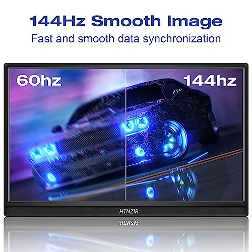 HTNZIR 15.6" 144Hz Portable Gaming Monitor, 1920 * 1080 Resolution, USB-C/HDMI Ports, Travel Monitor External Screen for Laptop, PC, PS5, Mac, Xb