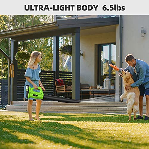 - 【Ultra-light weight & Low Noise】Huepar cordless leaf blower has a super light body which weighs less than 6.38lb that can be comfortably operated by one hand. With Huepar cordless leaf blower, you will experience less user fatigue during operation. During operation, no fumes, no gas and low noise can reduce environmental pollution or harm to the human body.