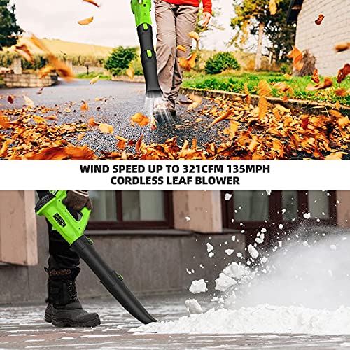 - 【6-Speed&High-quality Copper Motor】 Huepar rechargeable leaf blower features 6 levels of adjustable speed and generates air volume up to 321 CFM 135 MPH. This blower comes with powerful copper motor, which provides a longer lasting life and reduce energy consumption than traditional motors, it can runs max up to 20000 RPM. You will get a greater wind experience, sweeping debris from shops, garages, driveways, outdoor yards and garden fallen wet leaves or clears hard to reach surfaces.