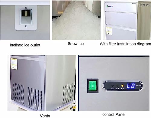 - ❄[Clear Snow Snowflake Ice Maker] 44-551lbs /24 hours of ice production, with this commercial flake ice maker, you can directly turn water into small flakes of ice, no need to make ice cubes through the ice maker first, and then It is more convenient and efficient to use a shaving ice machine that makes ice flakes. Modern ice making technology produces pure, healthy and authentic flavored snow and ice.