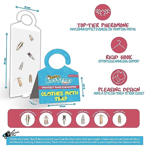 - 3 CLOTHES & CARPET MOTH TRAPS: Pheromone-Rich Glue, Wardrobe Friendly, Professional Moth Killer protects your favorite Clothes and Fabrics. Attract and restrain the most destructive moth types in the UK. The Common Clothes Moth, the Case Making Carpet Moth, and the Pale Backed Moth | Funny-Family Themed Design Make you Relate to it |