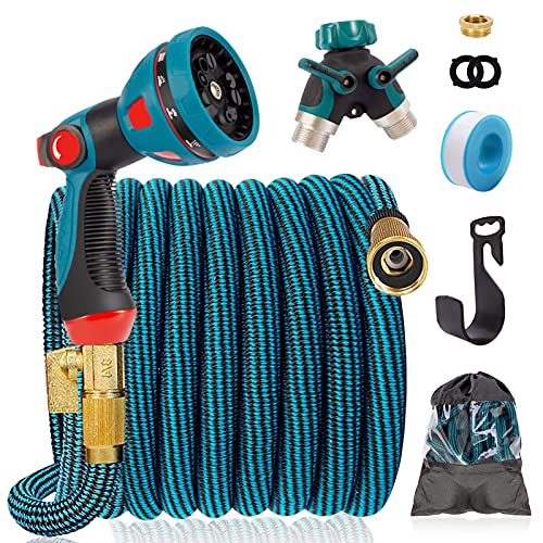 Home Garden & Outdoors IDEALHOUSE 100FT Expandable Garden Hose, 10 Function Spray Gun with 3/4″ Solid Brass Fittings, 2-Way Pocket Flexible Splitter, 3 Times Expanding