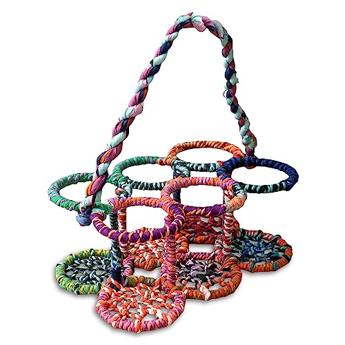- Made of iron wrapped colorful jute material; Crafted with meticulous attention to detail, this wine rack showcases a sleek and contemporary design that effortlessly complements any interior décor