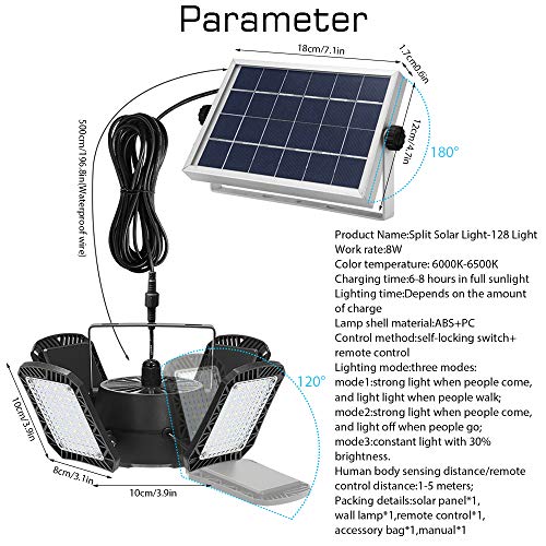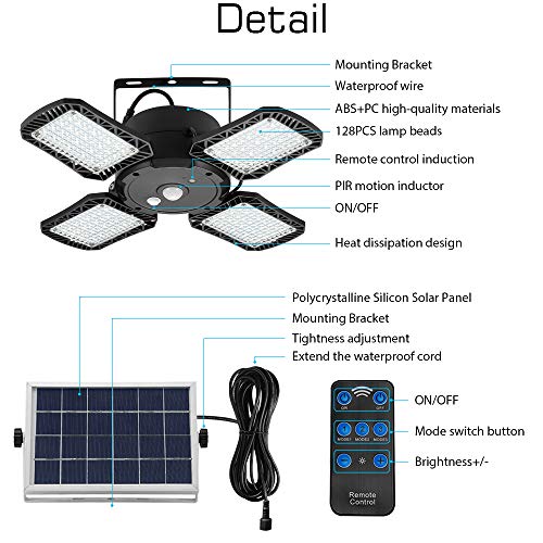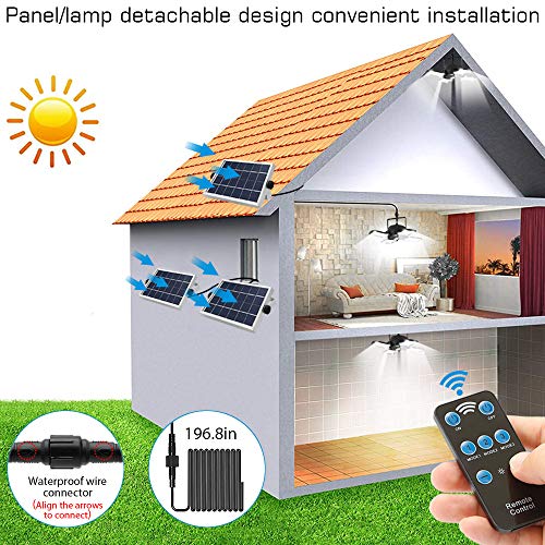- 【Unique Design】 The solar panel and the lighting device are separate. You can install the solar panel outside to charge it; and with the 5m cable, the light can be installed indoors or anywhere you want.