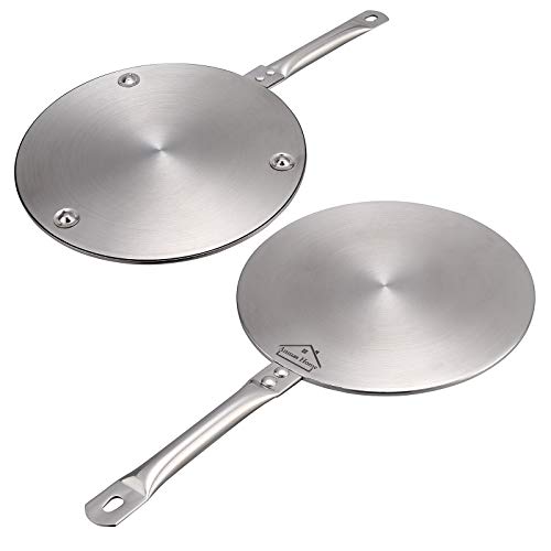 • SAFE AND RELIABLE: The induction disc converter adopts an uncoated process, which will not emit harmful gases and high-pitched noises when heated. It is normal for the surface of the converter disk to turn yellow, and it will not affect the function of the induction hob heat diffuser and induction cooker, nor is it a quality problem.