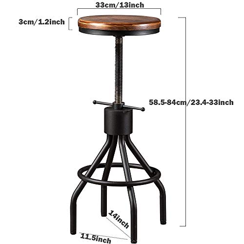 - [Dimension] Height of Bar Stool: 23-33inch; Diameter of Wooden Seat: 13inch; Thickness of Wooden Seat: 1.2inch; Height from floor to top of footrest: 9.5inch. Max capacity: 150kg/330lbs.
