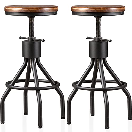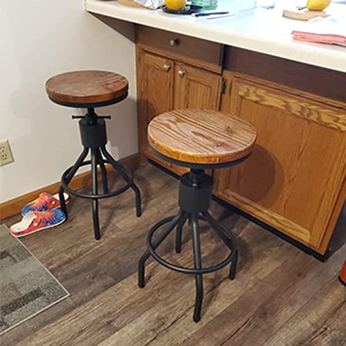- [Style] With brown wooden seat and black metal frame design, the bar stools bring rustic retro indutrial vintage feel over your home. They will look great with your kitchen island or counter, dinning room, office or whiskey barrel. Meanwhile, they are perfect house warming gift for your family or friends.