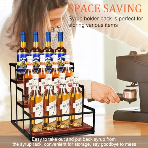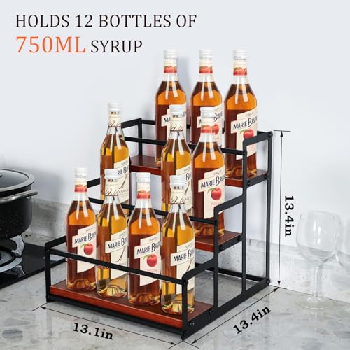 • Stylish and Functional Design: Our coffee syrup rack organizer is designed with three spacious shelves, providing ample space for up to 12 bottles of 750ml syrup bottles. Keep your favorite flavors neatly organized and easily accessible.