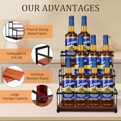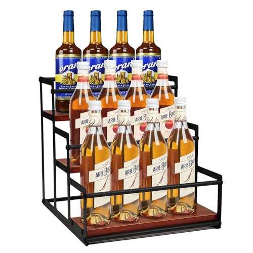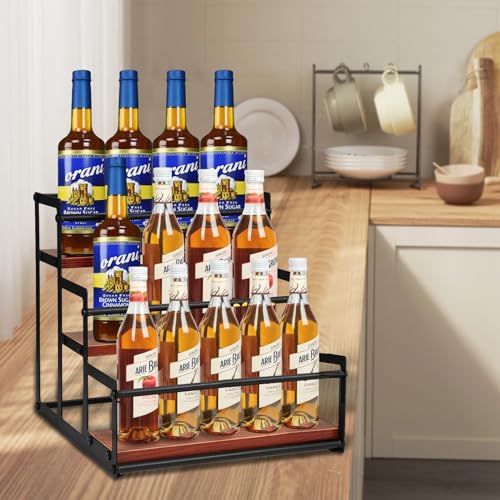 Infankey Coffee Syrup Rack Organizer Syrup Bottle Holder Stand for Coffee Bar 3-Tier 12 Bottles Storage Shelves for Syrup, Wine, Dressing for Kit