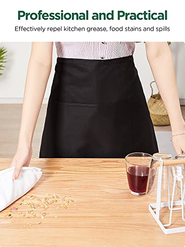 Home Garden & Outdoors InnoGear 3 Pack Waist Apron, Black Waiter Waitress Aprons with 3 Pockets Bistro Restaurant Gardening Half Apron for Men and Women(Black,Polyester