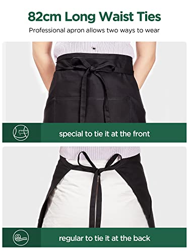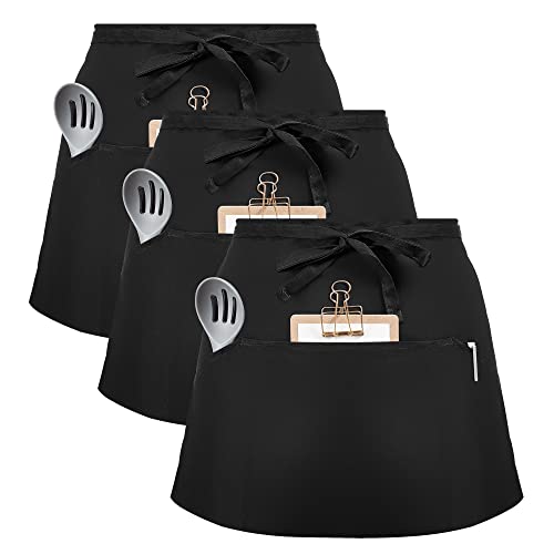 InnoGear 3 Pack Waist Apron, Black Waiter Waitress Aprons with 3 Pockets Bistro Restaurant Gardening Half Apron for Men and Women(Black,Polyester