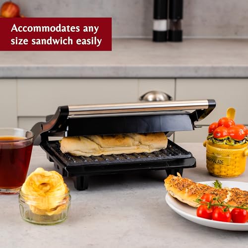 - COOL TOUCH HANDLE: The Panini Press and Health Grill is designed with a cool touch handle that ensures safe and convenient operation. The handle remains cool to the touch even during cooking, the panini style sandwich maker can be used to toast and press sandwiches. However, the grill is very versatile and plates can be utilised to prepare a variety of alternative delicious meals.