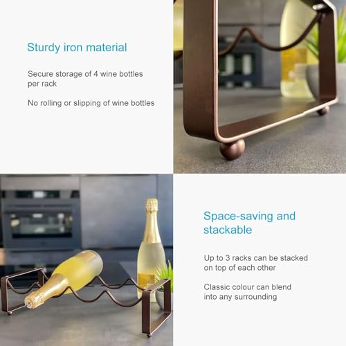 - Sturdy black iron wine rack for space-saving and secure storage of 4 wine bottles (1 rack per order!)