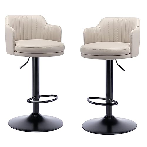 - Adjustable Swivel Barstools: The heigh chairs can be adjusted between 67cm and 88cm via the air lift handle. The high stool can rotate the seat 360 degrees. The added footrest provides a special level of user leg support.