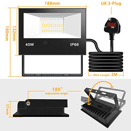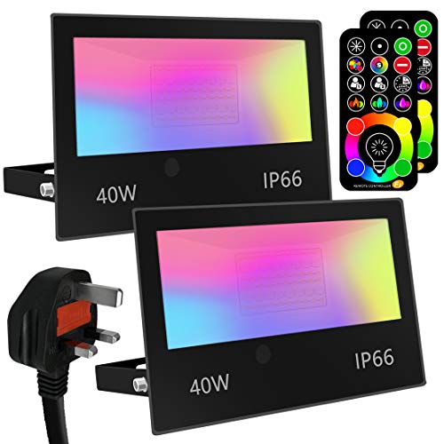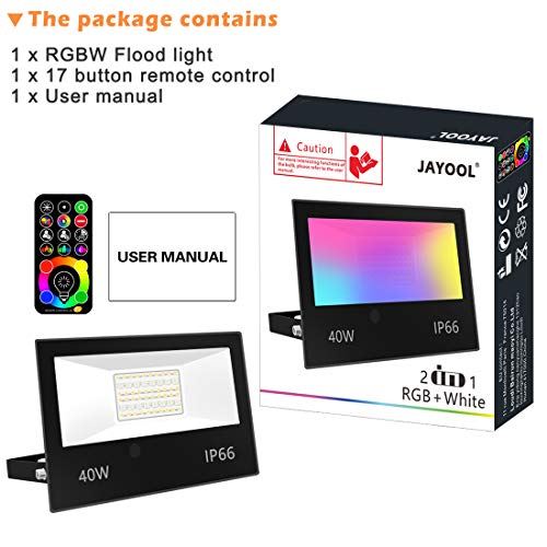 - RGBW LED Floodlight with Remote: 40W, up to 4000LM, Warm White (2700K) ,CRI>85, can be used for daily lighting. And 120 rgb colours avaliable, can be used for decoration and atmosphere lighting.