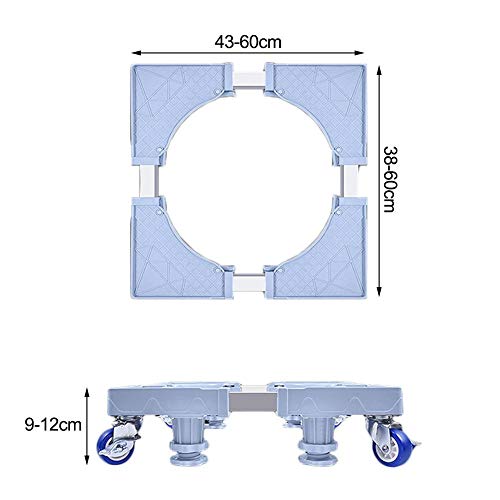 • Adjustable size: Length 43-60cm and width 38-60cm. Height 9-12cm. It is a retractable base that can be expanded according to the length of the washing machine, dryer and refrigerator.