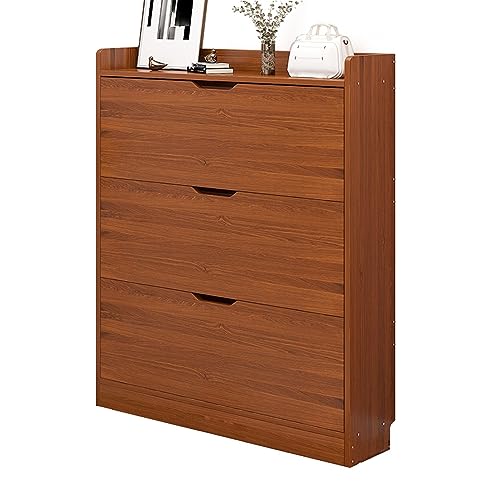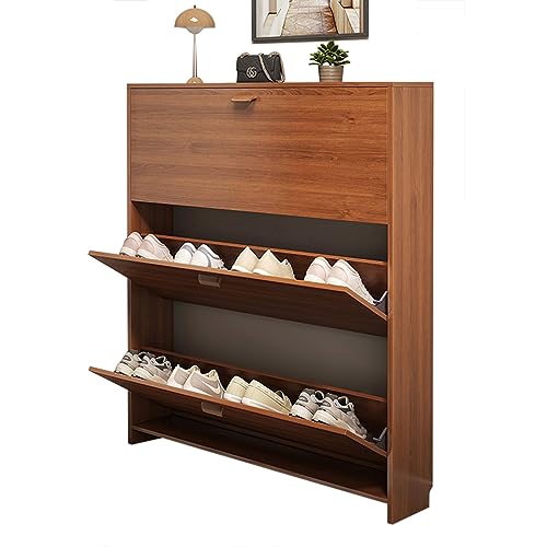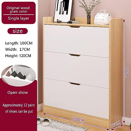 - 【Sufficient Storage Space】Overall sizes: 39.4”L x 6.7”W x 47.2”H. This entryway shoe storage cabinet has 3 flip drawers .this slim shoe cabinet can store up to 12/15 pairs of shoes (depending on their height and size). Additionally, the top surface and drawer are perfect for displaying picture frames, holding keys, wallets, and other small items.