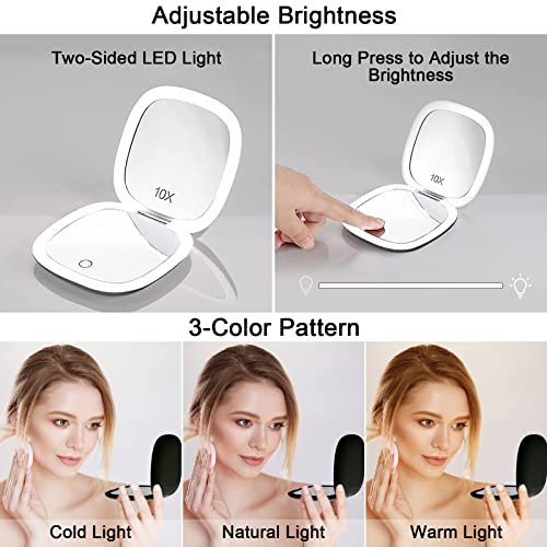 - 【Adjustable 3 Color Light】Build-in 56 LED Lights, the compact mirror provides 3 color lights, white light, natural light, and warm light.Long press the on/off to adjust the brightness of the light, is not only bright, but also soft enough to protect your eyes from harsh fluorescent.