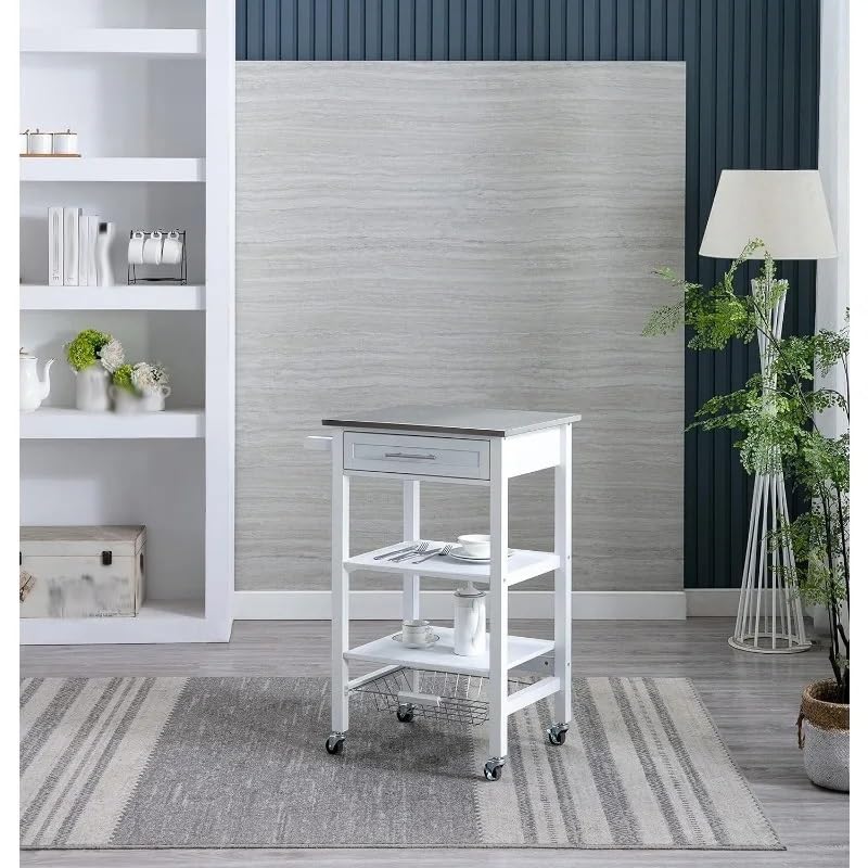 JJZXD Kitchen Cart With Stainless Steel Top, Rolling Cart