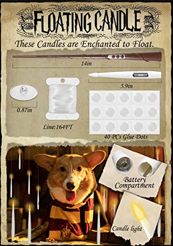 - Convenient & Easy To Use – The Floating Candles With Wand 0.6 (D)×5.9 (H) Came With 20 Sticky Hooks And 164Ft Fishing Line(We Have Provided Longer Fishing Lines For Hanging From Higher Ceilings), Hang Them Wherever You Like Using The Equipped Hook, Or Get Creative And Find Your Own Unique Way To Display It. To Place Some Of The Floating Candles On A Shelf Or Table, You Don’T Need To Install The Line. ?The Line Can Be Installed Easily, As Shown In The Video.?