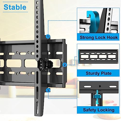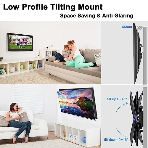 - 【Save Space】Keep your TV close to the wall to save space. Our low profile tilting mount holds the back of the TV just 2.2"(55mm) away from the wall for a sleek and tidy appearance.