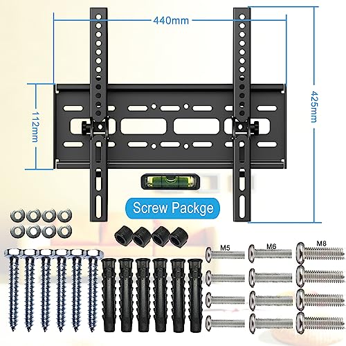 Product Description Our products are suitable for multiple brands of TV Max VESA is 400x400mm Min VESA is 75x75mm please check your VESA pattern carefully before purchase, Made of high-quality materials, good durability, longer life and high heat resistance. Neither a volcano nor an earthquake can cause harm to our products. Excellent design, suitable for a variety of occasions, the TV hook can be adjusted up and down 15 °, so you have the best viewing experience Applicable to multiple brands of TV including Samsung,Sony,Thomson, Toshiba, Sharp, LG, Philips,JVC,Vizio and more,But please don’t install it on a dry wall. JXMTSPW-- Make Your World Better The tilting wall mount is for 26" - 60" flat-panel TVs, its tilting system provides easy adjustment of viewing angle. The design ensures TV mounting stability and security. Adjustable TV brackets offer lateral shift movement to allow perfect TV position, even with off-center wall wood studs. TV is positioned just 2.2" / 55mm from the wall for a clean, low-profile appearance. Please check whether the mount is suitable for your TV: Please check your wall for wood studs, it can’t be used on concrete wall or drywall alone. Please check the weight of your TV. It must be less than 100 lbs/ 50kg. Look at the back of your TV, find the mounting holes and measure the horizontal and vertical distance, if the horizontal distance is within 15.75", vertical distance is within 15.75", then the bracket will work perfectly for you. How can I check if the mount is suitable for my TV/monitor? First, please check your wall for wood studs. You just only need a single stud to get it up on the wall. Of course! It can be mounted on concrete wall and brick wall, but you need to use anchors when installing. Next, the weight of your TV/monitor should be less than 100lbs/50kg and your TV/monitor should be at least 26 inch. Then, please check the VESA pattern, VESA = horizontal × vertical. Mounting holes distance on the back of TV/monitor must be less than 75mm/3" horizontally and 400mm/15.75" vertically. Finally, please check the TV back area inside the 2 or 4 mounting holes to make sure there are not any cables outlet. Otherwise, the plate may block the plugs Tilt TV Mount Fixed Monitor Mount Tilt TV Mount Fixed TV Monitor Mount TV Size 14-42" 14-24" 26-60" 14-42" Mount Type Tilt TV Mount Fixed Monitor Mount Tilt TV Mount Fixed TV Monitor Mount VESA Pattern 75x75-200x200mm 75x75-100x100m 75x75-400x400m 75x75-200x200mm Distance to Wall 1.90"(50mm) 0.36"(12mm) 2.20"(55mm) 0.6"(20mm) Tilt Angle +15°/-15° 0° +15°/-15° 0° Swivel Angle 0° 0° 0° 0° Max Load 55lbs(25kg) 33lbs(15kg) 100lbs(50kg) 55lbs(25kg)