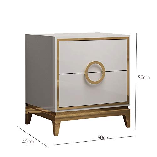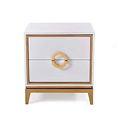 Home Bedroom Furniture JYDQM Bedside Table with Double Drawer Design, Stainless Steel Metal Plating Frame Simple Bedside Table, White