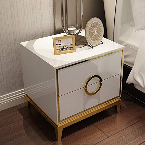 JYDQM Bedside Table with Double Drawer Design, Stainless Steel Metal Plating Frame Simple Bedside Table, White