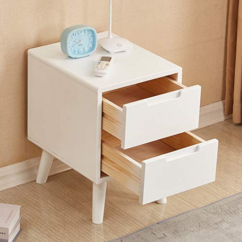 Home Bedroom Furniture JYDQM Simple Bedside Table, All Solid Wood Double Drawer Design, Mini White Bedside Table