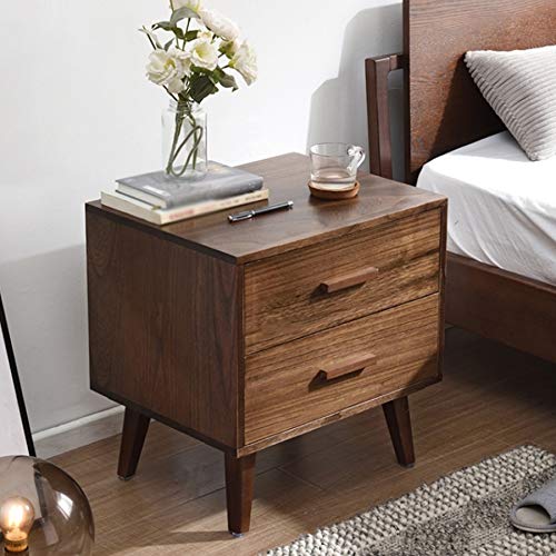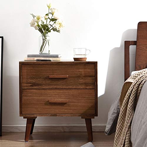 JYDQM Solid Wood Bedside Table Walnut Color Bedside Table, Simple Bedroom Double Drawer Bedside Table