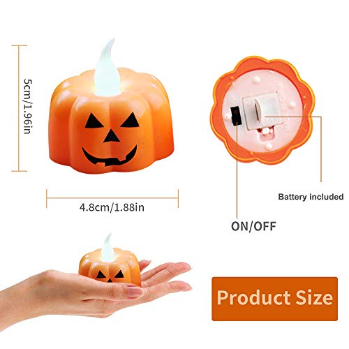 • 🎃Flameless Candles: Made of non-toxic plastic material, these flamless tea lights are powered by included button cells(use +100hours), no flame, no need to worry about any fire disaster happening, absolutely safe for families with kids or pet.