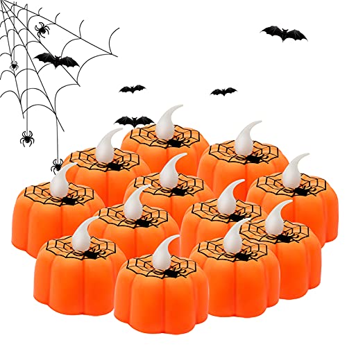 Home Garden & Outdoors JYPS 12PCS Pumpkin Tealights Candles Halloween Flameless Candles Battery Operated LED Tea Lights 3D Orange Lanterns for Halloween Decorations, In