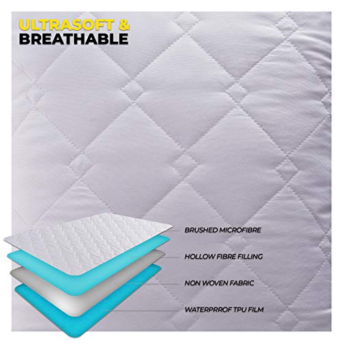 - 100% WATERPROOF AND HYPOALLERGENIC - Our ultra-soft mattress protectors are 100% waterproof. Effectively repels all liquids including accidental spills and bodily fluids such as sweat or urine. Hypoallergenic and dust mite protection provides better care for your skin and hair guaranteeing a pleasant, relaxing and carefree sleep which makes it perfect for people who are prone to allergies.