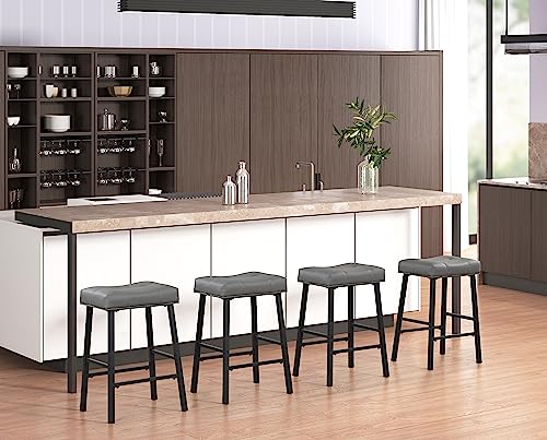 KAIRUITUCH Bar Stools Set of 2 Bar Chairs PU Leather Upholstered Breakfast Stools Easy Assembly Suitable for Kitchen, Bar, Dining Room, KR302PDG