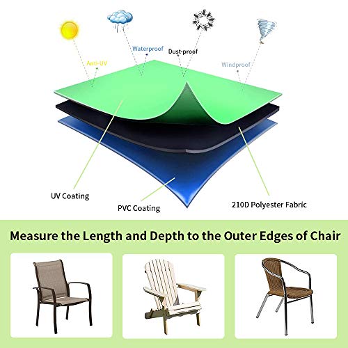 - 210D Oxford Cloth Material - Our patio chair cover is made of high-quality 210D Oxford fiber, with waterproof coating and waterproof bottom, with good waterproof function. This heavy-duty chair cover also has anti-ultraviolet, anti tear and anti fading properties, which can better protect the furniture from harsh environments (such as strong sunlight, rain, snow, dust, etc.).