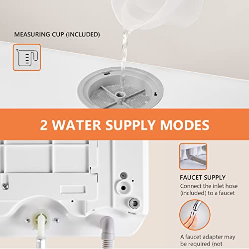 • 【𝗗𝗨𝗔𝗟 𝗪𝗔𝗧𝗘𝗥 𝗦𝗨𝗣𝗣𝗟𝗬 𝗠𝗢𝗗𝗘𝗟】- Portable dishwasher is compatible with both water tank and tap mode. The water tank is a great option if you want to wash dishes away from the sink. By manually adding water to the built-in 5 litre water tank,you can place the dishwasher in any suitable location without having to connect it to tap water. The automatic water level indicator lets you know when the correct water level has been reached.