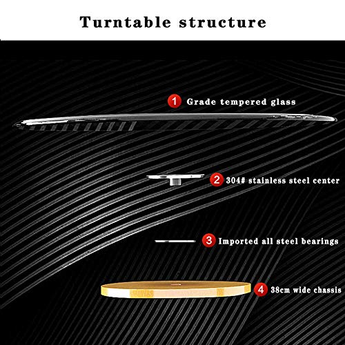 • <Product structure: turntable = tempered glass + stainless steel center + all-steel bearing + 38cm wide chassis. The edges are round and beautiful, delicate and smooth, and will not scratch your hands when rotating.