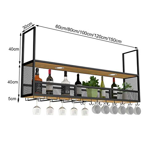 Home Home Bar Furniture KEppd Wine Rack Wall | Hanging Ceiling Mounted Wine Rack Wooden | Metal Wine Bottle Holder with Spotlights | Suspended Wine Glass Holder | Wine H