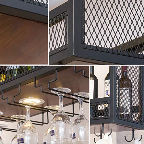KEppd Wine Rack Wall | Hanging Ceiling Mounted Wine Rack Wooden | Metal Wine Bottle Holder with Spotlights | Suspended Wine Glass Holder | Wine H