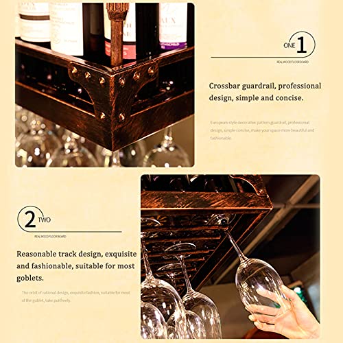KEppd Wine Rack Wall Mounted - Hanging Wine Rack, Ceiling Upside-Down Wine Glass Rack, Vintage Wine Bottle Holder for Bars Restaurants Kitchens-B