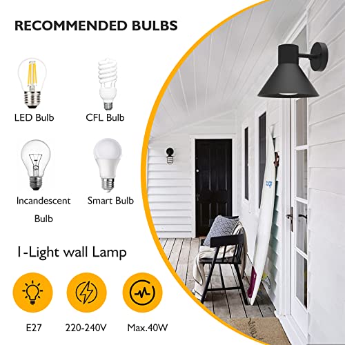 Home Garden & Outdoors Kerry Outdoor Wall Light, Indoor Outside Lighting Mains Powered, IP44 Retro Cone Shape Downlight, Anthracite Grey Metal E27 Socket Exterior Wall