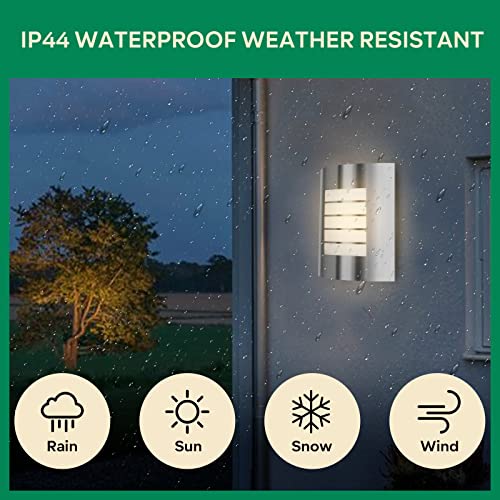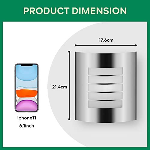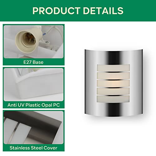 Home Garden & Outdoors Kerry Outdoor Wall Light, Outside Front Door Lighting Mains Powered, Waterproof IP44 Exterior Lamp, Curved Stainless Steel Silver Security Light,