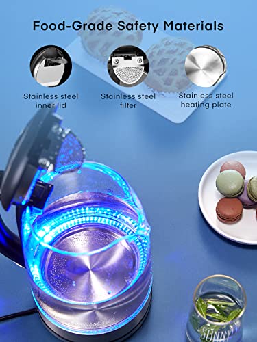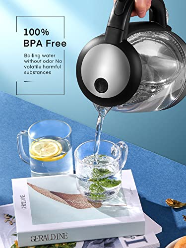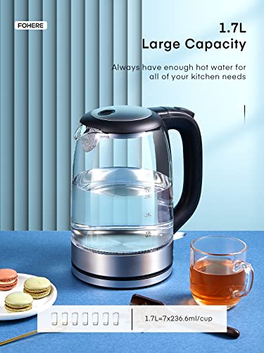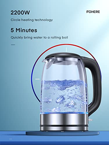 - Premium Material Kettle - FOHERE glass electric kettle made of high quality borosilicate glass for wear resistance and 100% baby food grade stainless steel (BPA free) for no harmful substances or unpleasant odor that leads you to a healthy, safe and comfortable life.